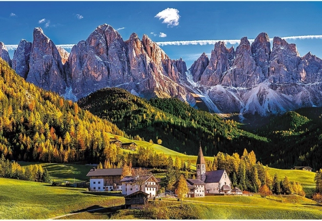 Plongez dans la vallée pittoresque de Val di Funes, au cœur des Dolomites, et assemblez un panorama à couper le souffle aux couleurs vives et aux sommets dramatiques. Grâce aux découpes précises et aux pièces solides, l’image tient parfaitement et l’assemblage est fluide et agréable.