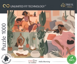 Découvrez un plaisir sans limites avec la série TREFL UFT. La technologie spéciale de découpe permet de relier n’importe quel nombre de motifs – créez un collage original exactement selon vos envies. Le motif Yoga, Cats & Coffee apporte de charmants chats, des tasses de café et une atmosphère matinale apaisante, idéale pour les débutants comme pour les puzzleurs expérimentés.