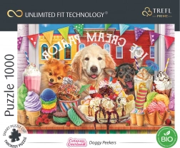 La Trefl Unlimited Fit Technology (UFT) apporte une nouvelle dimension au puzzle : les motifs de la série peuvent être connectés librement afin de créer de grands collages sans limites. Le motif de chiens adorables devant une pâtisserie ravira les amoureux des animaux et du design de qualité.