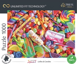 Plongez dans un monde de couleurs avec un motif de sucettes et confiseries et assemblez une image d’environ 68,3 × 48 cm. La série TREFL Unlimited Fit Technology permet de créer vos propres collages de puzzles – vous fixez les limites. Une technologie de découpe spéciale garantit que les différents motifs de la série UFT s’emboîtent parfaitement.
