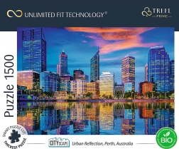 Apportez chez vous l’atmosphère d’une métropole moderne avec le motif du reflet de la ville de Perth en Australie. La série TREFL UFT fait passer le puzzle classique au niveau supérieur – grâce au poinçonnage spécial, vous pouvez combiner plusieurs puzzles UFT et créer votre propre mosaïque grand format sans limites.