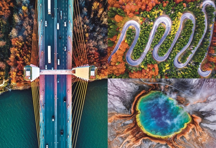 - Aerial Mindblow : Au bout de la route (vues aériennes d’un pont, d’une route et d’une source géothermique)