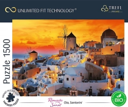 Puzzle TREFL UFT coucher de soleil romantique : Oia, Santorin 1500 pièces
