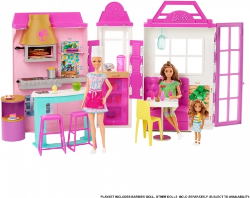 Barbie restaurant – set de jeu avec accessoires et poupée