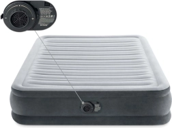 Le matelas gonflable INTEX est idéal comme couchage d’appoint confortable pour les invités ou pour le camping. La pompe intégrée 220–240 V assure un gonflage rapide en env. 4,5 minutes et un dégonflage automatique sans effort. La surface en velours est douce au toucher, tandis que le PVC robuste garantit une longue durée de vie et un entretien facile.
