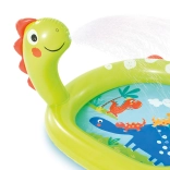 Jouette piscine gonflable avec une fontaine et un motif de dinosaure idéale pour le divertissement estival dans le jardin. La piscine est fabriquée en matière PVC de qualité avec des dimensions de 119 x 109 x 66 cm.