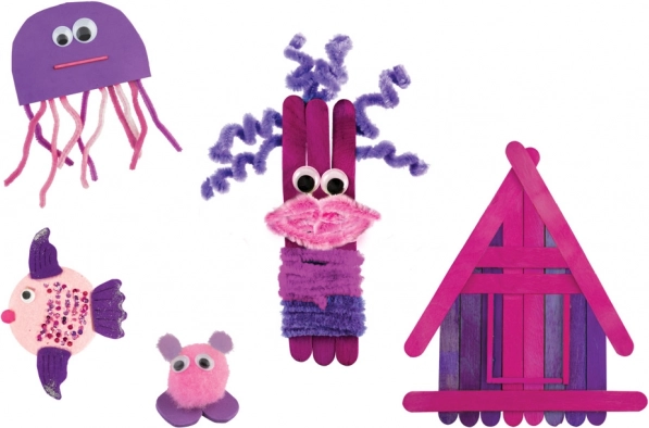 Créez des poissons, une méduse, une maisonnette ou de joyeux personnages avec des bâtonnets de glace et des fils chenille. Inspirant, amusant et prêt en un clin d’œil.