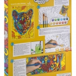 Le kit complet comprend une toile avec motif préimprimé, des peintures acryliques et 3 pinceaux de tailles différentes. Ouvrez la boîte et commencez à peindre immédiatement.