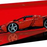 LEGO Technic Ferrari Daytona SP3 est une réplique précise de la véritable Ferrari, offrant de nombreuses fonctions telles que la direction, une boîte de vitesses séquentielle à huit rapports avec levier de changement et un moteur V12 avec pistons mobiles. Ce modèle de collection est doté de portes en élytre ouvrantes et d’un capot sous lequel se trouve un numéro de série unique donnant accès à des contenus en ligne.