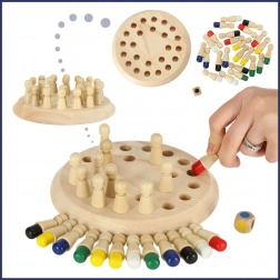 Ce jeu de mémoire en bois associe des règles simples à un entraînement malin du cerveau. Les joueurs mémorisent d’abord les couleurs des chevilles, puis les retournent et, selon le résultat du dé, cherchent la bonne couleur. Les points vont à celui qui se souvient le mieux. Le jeu développe la coordination œil-main, la motricité fine et la concentration.