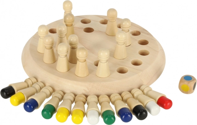 Mémorisez les positions des couleurs, retournez les chevilles et, selon le résultat du dé, trouvez la couleur correcte. Règles simples, grand bénéfice cognitif.