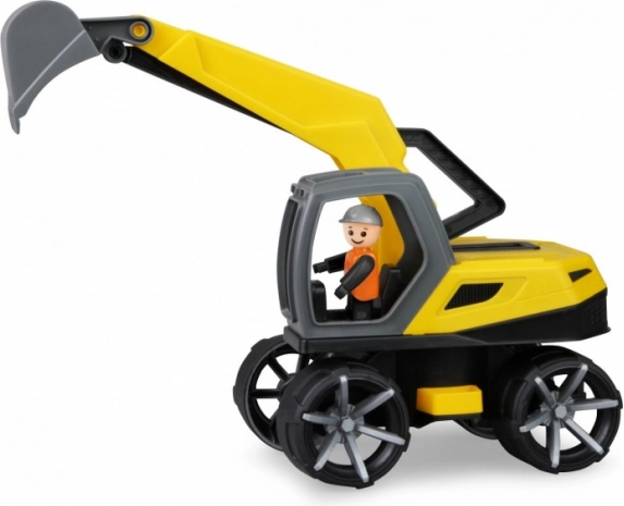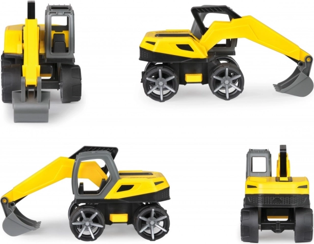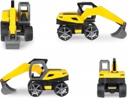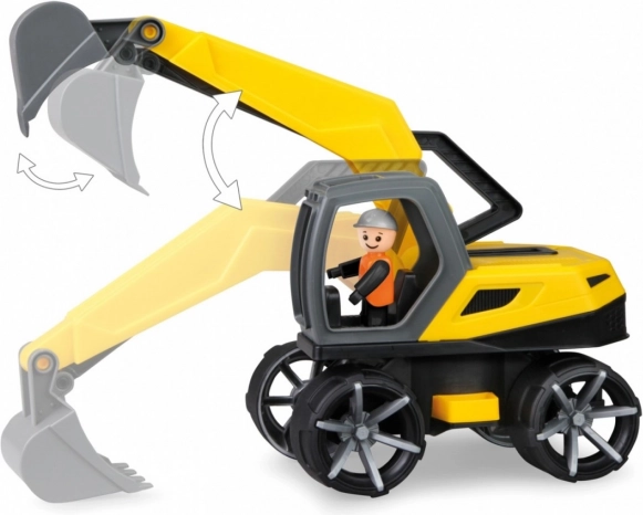 Pelleteuse robuste pour enfants de la série TRUXX 2 pour jouer à la maison comme en extérieur. Propose un châssis rotatif avec verrou de sécurité, un bras entièrement fonctionnel avec godet commandé par une poignée, et une figurine de conducteur dans une cabine facilement accessible. Fabriqué en plastique sans substances nocives en République tchèque.