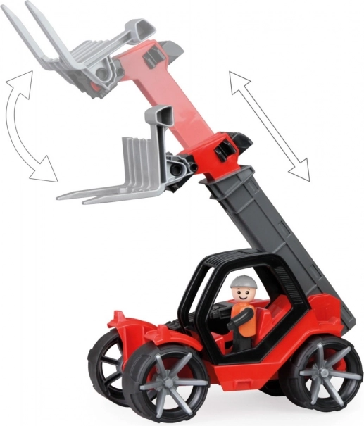 Ce chargeur télescopique est fabriqué en plastique de qualité et propose une structure solide qui résiste au jeu intensif. Grâce aux roues revêtues de caoutchouc et silencieuses, il est idéal aussi pour jouer en intérieur. Avec la cabine rabattable et la figurine active, les enfants peuvent facilement s’imaginer opérateurs d’un vrai véhicule de chantier.