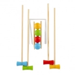 Amusement en plein air pour toute la famille! Le croquet en bois coloré est un jeu idéal pour les enfants dès l'âge de 6 ans. Qui battra le record avec le moins de coups?