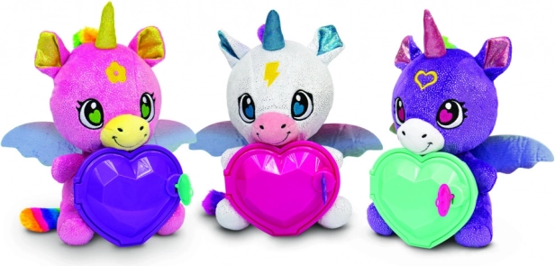 Ce que vous trouverez à l’intérieur : un bracelet surprise, une bague surprise et des autocollants. Les enfants peuvent cacher leurs petits trésors dans le cœur de la licorne et inventer leurs propres histoires secrètes. La peluche est douce, sûre et adaptée aux câlins quotidiens comme au jeu créatif.