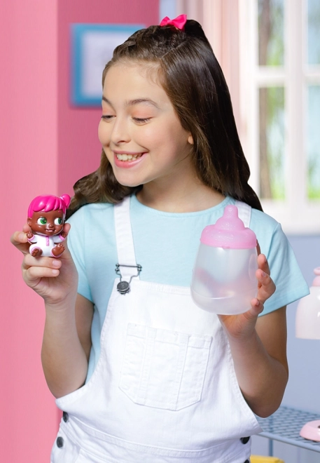 Un emballage stylé en forme de biberon ajoute à la joie du déballage et sert aussi de cachette pratique pour la poupée.