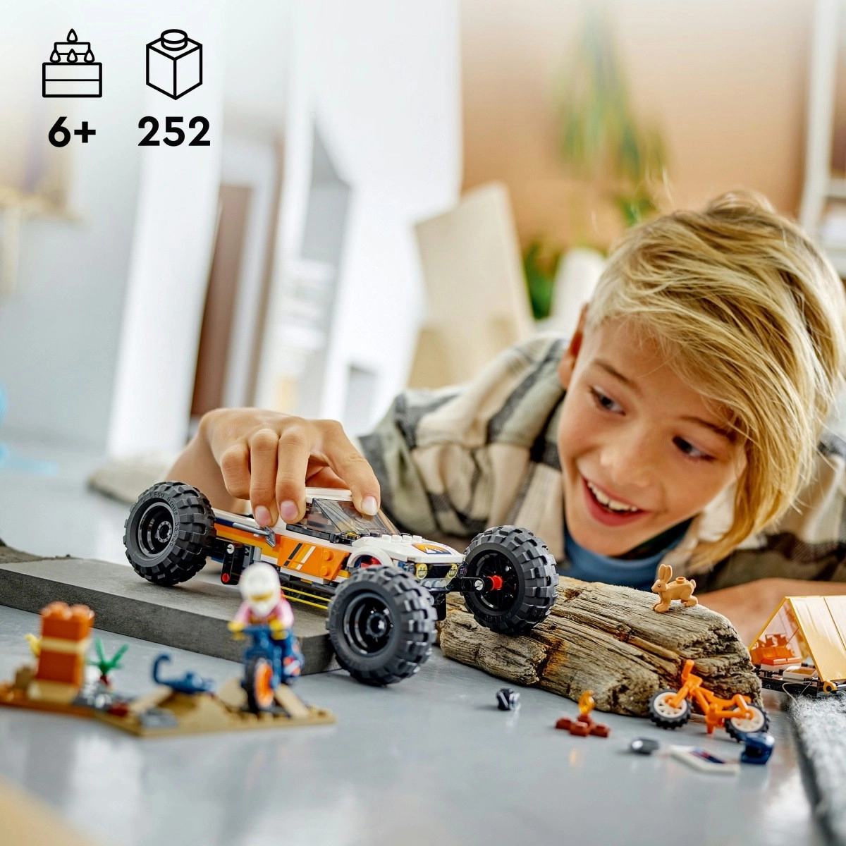 Ce set d’action pour les enfants dès 6 ans apporte tout le nécessaire pour une sortie nature parfaite : un puissant 4x4 avec porte-vélos, deux VTT détaillés, une tente de camping et des accessoires, dont un appareil photo, une poêle, une pelle et un sac à dos. Grâce à ses grandes roues et à son châssis haut, le véhicule affronte tous les terrains et les enfants profitent d’un jeu très réaliste.