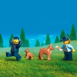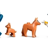 Deux minifigurines de policiers, une figurine de chien et un chiot, plus une brosse, une lampe torche, une pelle et des friandises – tout pour des scènes de jeu de rôle dynamiques avec maîtres-chiens.