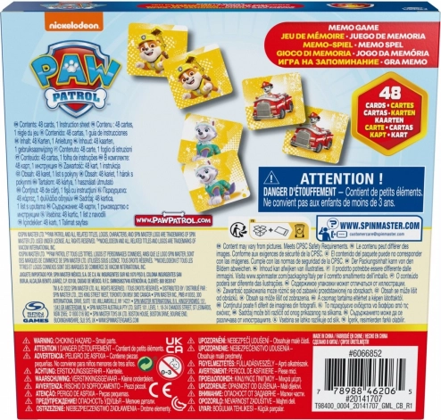 Découvrez un jeu de memory amusant avec les héros de la série PAW PATROL, qui ravira les enfants dès 3 ans. Le jeu propose 36 cartes résistantes au format 6 × 6 cm, en carton épais, développe la mémoire visuelle et la concentration, et grâce aux différentes variantes de jeu, il convient aussi bien aux petits qu’aux plus grands joueurs. La boîte pratique assure un rangement et un transport faciles.