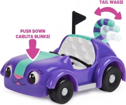 La petite voiture Carlita est à moitié chat et à moitié voiture. Les sièges peuvent accueillir Pandy et un autre personnage de la Maison magique de Gabby. Conduis Carlita et elle remuera la queue. Appuie sur le capot et elle clignera de l’œil. Appuie sur le côté gauche ou droit pour la faire regarder à gauche et à droite. Le set comprend la voiture, la figurine de Pandy, une couverture de pique-nique, une glacière et une boîte surprise. Convient à partir de 3 ans.