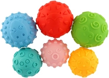 Chaque balle couine lorsqu’on la presse, ce qui motive les enfants à jouer, renforce la préhension et développe l’ouïe.