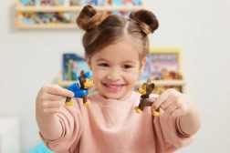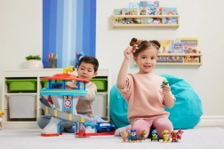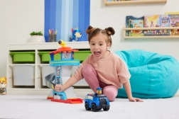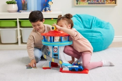 Placez Chase en civil à l'avant de l'ascenseur et Chase le héros à l'arrière. Soulevez l'ascenseur et observez la transformation de Chase en civil en Chase le héros. Au sommet de la tour, choisissez l'une des 3 cartes de mission recto-verso pour découvrir la tâche du jour. Quand il est temps pour une mission de sauvetage, descendez le toboggan directement dans la voiture de police de Chase et partez à l'action en appuyant sur le lanceur de voitures. Pour encore plus de plaisir, vous pouvez collectionner d'autres chiots comme Marcus, Stella et Ruben avec leurs véhicules.