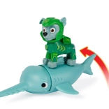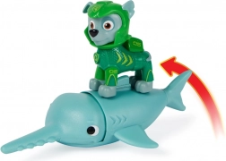 Rocky dans une combinaison en néoprène toute neuve et son fidèle ami, le poisson-scie. Installe Rocky sur l’aileron dorsal du poisson-scie, pousse le poisson-scie vers l’avant pour activer les mouvements de sa tête, et pars en mission de sauvetage. Convient à partir de 3 ans.