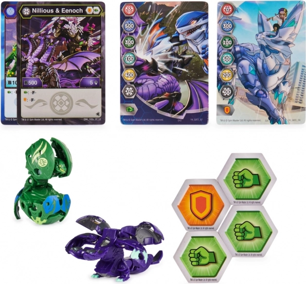 Boîte métallique élégante au nouveau design, pouvant contenir jusqu’à 6 Bakugan, 2 paquets de 40 cartes et 12 Baku-jetons. L’emballage comprend 1 boîte métallique avec couvercle, 1 Bakugan exclusif, 1 Bakugan mystère, 4 Baku-jetons, 2 cartes de personnage et 2 cartes Gate. Convient à partir de 6 ans.