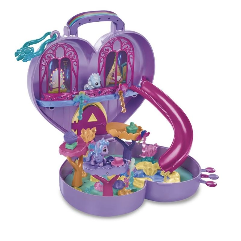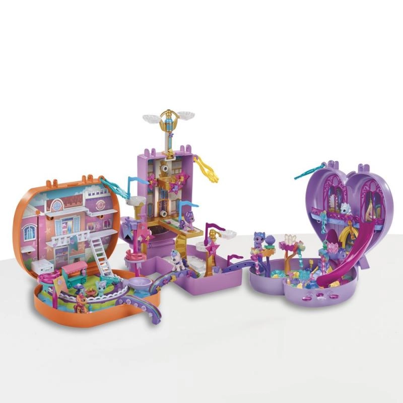 Créez votre monde de mini-amis magiques venus de toute Equestria ! Les sets My Little Pony Mini World Magic sont composés de petites scènes et d’adorables figurines inspirées de la série My Little Pony: Tell Your Tale. Ce set Compact Creation comprend 2 adorables figurines de 1 pouce : Sunny Starscout et Choco Cozy ! Il est livré avec plus de 40 pièces pour personnaliser une scène à Maretime Bay. Construisez le monde avec des clôtures et des escaliers, assemblez le chariot à smoothies de Sunny et accrochez des fanions en tissu. Fixez les accessoires et les éléments de construction à l’aire de jeu pour créer un mini-monde, puis personnalisez la scène à l’aide de la planche d’autocollants incluse. Placez les accessoires « gemmes » dans la passoire et ajoutez de l’eau froide pour provoquer un changement de couleur. Imaginez découvrir un trésor sur la plage avec Sunny et Choco Cozy ! Le tout se range dans une valisette portable pour s’amuser en déplacement. Ce jouet est un excellent cadeau de fête ou d’anniversaire pour les enfants à partir de 5 ans !