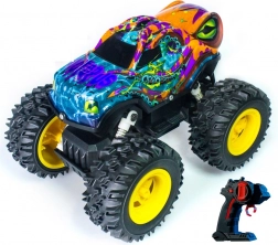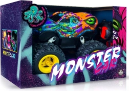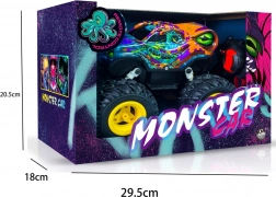 La voiture Monster RC 2,4 G avec effets lumineux se déplace vers la gauche, la droite, en avant et en arrière. Vitesse maximale 5 km/h. Fréquence 2405 MHz – 2475 MHz, puissance radiofréquence maximale 5 mW, portée de la télécommande 20 m.