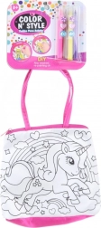 - Sac à colorier, 4 feutres pour textile, strass décoratifs