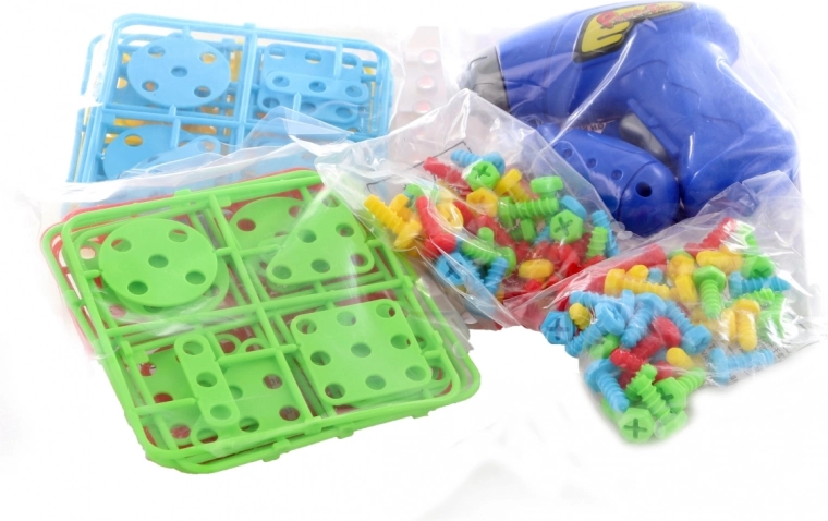 Jeu de construction à visser amusant et créatif avec perceuse pour petits constructeurs. L’ensemble comprend 144 pièces, une plaque de base en plastique, une perceuse pour enfants à piles et un tournevis. Idéal pour le développement de la motricité fine, de la logique et de l’imagination. Convient aux enfants dès 3 ans.