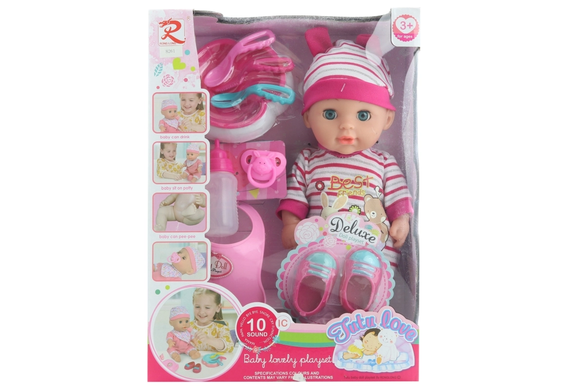- Fonctions interactives : le bébé émet des sons et fait pipi après avoir bu.