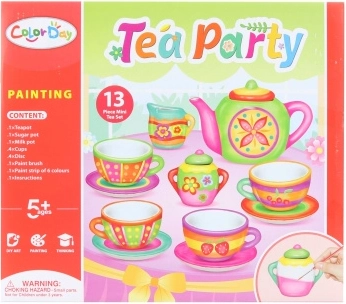 Conçois et colore ton propre service à thé en céramique. Comprend une théière, des tasses avec soucoupes, un crémière et un sucrier, avec des peintures et un pinceau. Idéal pour les enfants créatifs dès 5 ans.