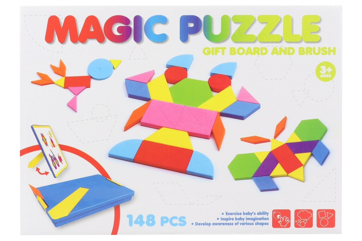 Découvrez un loisir créatif pour enfants et adultes avec ce set pratique. Tangrams magnétiques en mousse dans une boîte en plastique robuste, comprenant 148 pièces, idéal pour développer l’imagination, la motricité fine et la logique. Parfait à la maison comme en voyage, adapté aux enfants à partir de 3 ans.