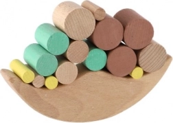 Le jeu contient différents blocs que les enfants placent sur la base d'équilibre, exerçant ainsi leur motricité fine.