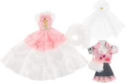 Transformez votre poupée en une icône de mode avec notre ensemble de vêtements. Comprend deux types de magnifiques robes avec des détails en dentelle élégants, accompagnées d'astucieux accessoires pour différentes occasions. Un excellent choix pour toutes les petites créatrices de mode !