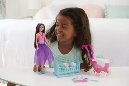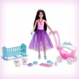 Plongez dans un monde de fantaisie avec le set de jeu féerique Skipper™. Ce set inclut une poupée Skipper™ portant un joli corsage rose et une jupe en tulle violette, complétés par un nœud bleu dans les cheveux. La poupée est idéale pour tout enfant souhaitant jouer au soignant, toutefois il est important de noter que la poupée ne tient pas debout seule.
