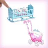 Le set comprend deux petits agneaux que les enfants peuvent nourrir et choyer, ainsi qu’une poussette inspirée d’un carrosse royal qui enchantera tout petit prince ou princesse. Parmi les autres accessoires, on trouve un lit à bascule et d’autres essentiels pour prendre soin des agneaux à la perfection.