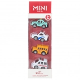 Ce set pratique propose quatre petites voitures métalliques au style soigné, qui se distinguent par une construction solide et un design attrayant. Grâce à leurs dimensions compactes, elles se glissent facilement dans une poche ou un sac à dos, pour accompagner les enfants en déplacement comme à la maison.