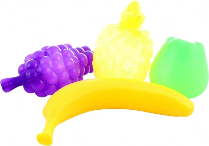 Ce set de fruits colorés inclut des favoris tels que banane, pomme, orange, raisin et ananas. Chaque pièce est fabriquée en plastique léger et résistant avec des bords arrondis pour un jeu en toute sécurité. L’emballage pratique en filet facilite le transport et le rangement.
