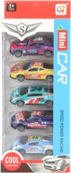 Ce set propose cinq modèles de petites voitures différents qui raviront tous les jeunes conducteurs. Grâce à son emballage pratique, il est idéal comme cadeau, pour les déplacements ou pour enrichir la collection à la maison. Les voitures sont en plastique, faciles à manipuler et favorisent le développement de l’imagination et de la motricité fine.