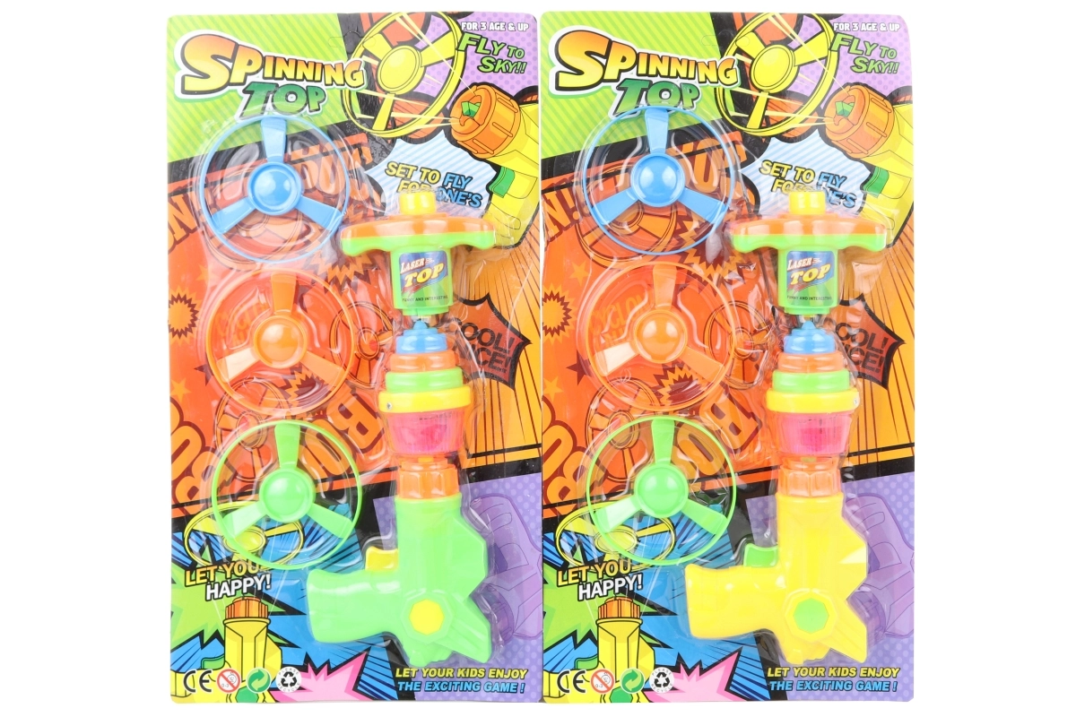 - Kit complet : pistolet, 3 hélices et toupie colorée