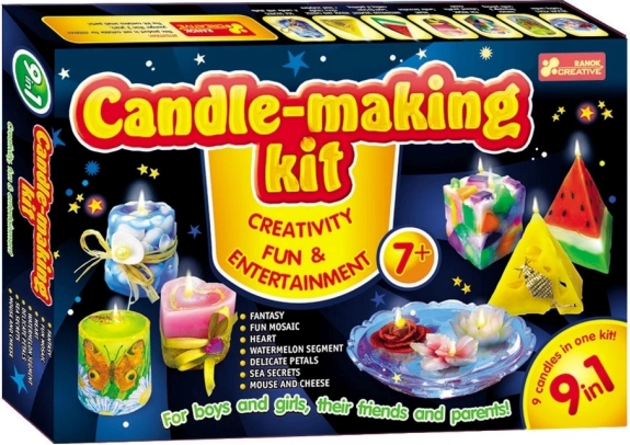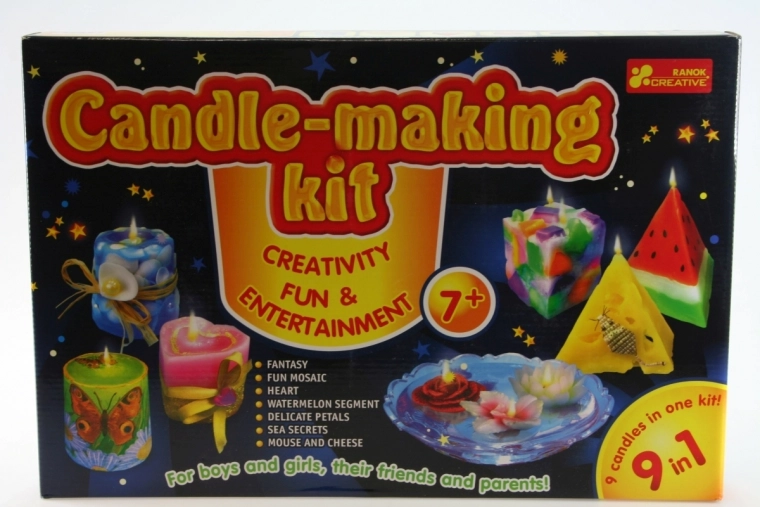 Avec ce grand coffret, vous pouvez fabriquer jusqu’à 9 bougies confortablement à la maison. Différentes couleurs et formes de bougies (cœur, pastèque, marine, flottante, fromage et souris, mosaïque, etc.). Le coffret contient tout le nécessaire pour la fabrication (paraffine, moules de coulée, colorant, mèches, peintures acryliques, colle, paillettes, perles en verre, rubans satinés, etc.). Le kit comprend par exemple une base de cire, des pochoirs, des gobelets, des petits moules, un fil métallique, des perles, des coquillages, une serviette décorative, des peintures, un ruban, de la colle, une ficelle, des crayons de cire et bien plus encore. Dimensions de l’emballage 30 x 44 x 6 cm. Âge 7+. FABRIQUÉ EN EUROPE