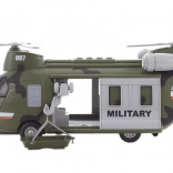 Ce hélicoptère militaire à piles, riche en détails, offre aux enfants de nombreuses possibilités de jeu créatif. En appuyant sur un bouton, les effets lumineux et sonores s’activent pour renforcer l’ambiance de missions d’action.