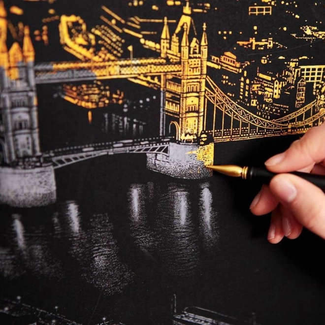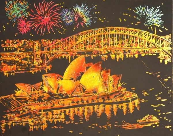 Découvrez la magie de la technique à gratter : sous la couche noire se cache un fond doré qui donne à chaque trait gratté un effet contrasté et élégant. Le motif iconique de l’Opéra de Sydney en version nocturne ravira aussi bien les débutants que les confirmés, et l’image finale deviendra une décoration originale.