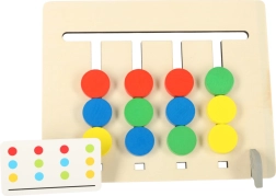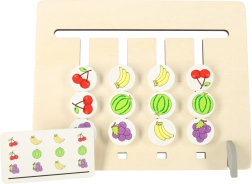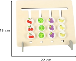 Découvrez un jeu amusant et éducatif pour enfants, qui allie apprentissage et plaisir. Une planche en bois réversible avec jetons coulissants et cartes-modèles développe la logique, la coordination et la reconnaissance des couleurs et des fruits. Sa fabrication en bois de qualité et ses motifs ingénieux motivent à jouer et à se concentrer.