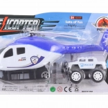 L’ensemble comprend un hélicoptère à friction d’environ 31 x 11 cm et une petite voiture de 9,5 x 5,5 cm à roue libre – le tout en plastique. Dimensions de l’emballage : 33 x 19 cm. Âge : 3+