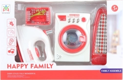 Découvrez l’amusant ensemble d’appareils ménagers pour enfants Happy Family, qui introduit les plus jeunes aux tâches domestiques par le jeu. Le set comprend une machine à laver, un fer à repasser, une planche à repasser et un panier à linge. Des éléments réalistes, lumières et sons soutiennent le développement de l’imagination et le jeu de rôle. Idéal pour les enfants à partir de 3 ans.