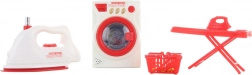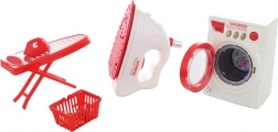 - Set de buanderie complet : machine à laver, fer à repasser, planche à repasser et panier à linge